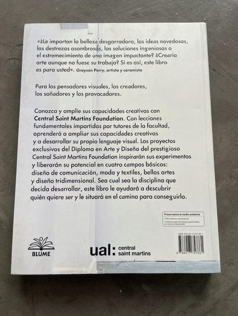 ¿Le importan la belleza desgarradora, las ideas novedosas, las destrezas asombrosas, las soluciones ingeniosas o el estremecimiento de una imagen impactante? ¿Crearía arte, aunque no fuese su trabajo? Si es así, este libro es para usted". Grayson Perry. Artista y ceramista * Para los pensadores visuales, los creadores, los soñadores y los provocadores. * Conozca y amplíe sus capacidades creativas, a través de lecciones fundamentales impartidas por tutores de la facultad (UAL:Central Saint Martins). Desarrolle su propio lenguaje visual y amplíe su talento creativo con estos proyectos exclusivos del Diploma en Arte y Diseño del prestigioso Central Saint Martins Foundation, que inspirarán sus experimentos y liberarán su potencial en diversos ámbitos: diseño de comunicación, moda y textiles, bellas artes y diseño tridimensional. Sea cual sea la disciplina que decida desarrollar, este libro le ayudará a descubrir quién quiere ser y le situará en el camino para conseguirlo.